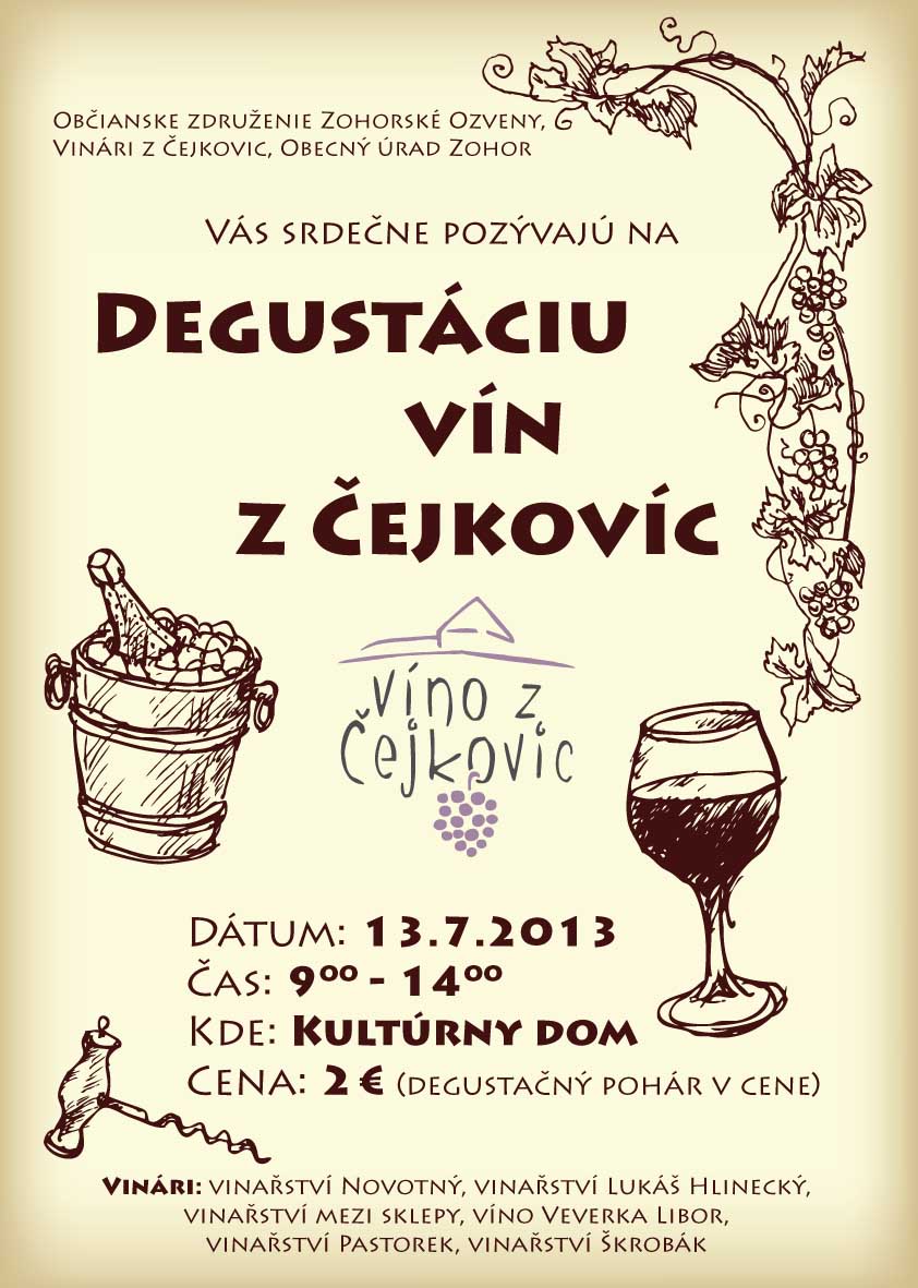 Občianske združenie Zohorské ozveny, Vinári z Čejkovic, Obecný úrad v Zohore Vás srdečne pozývajú na