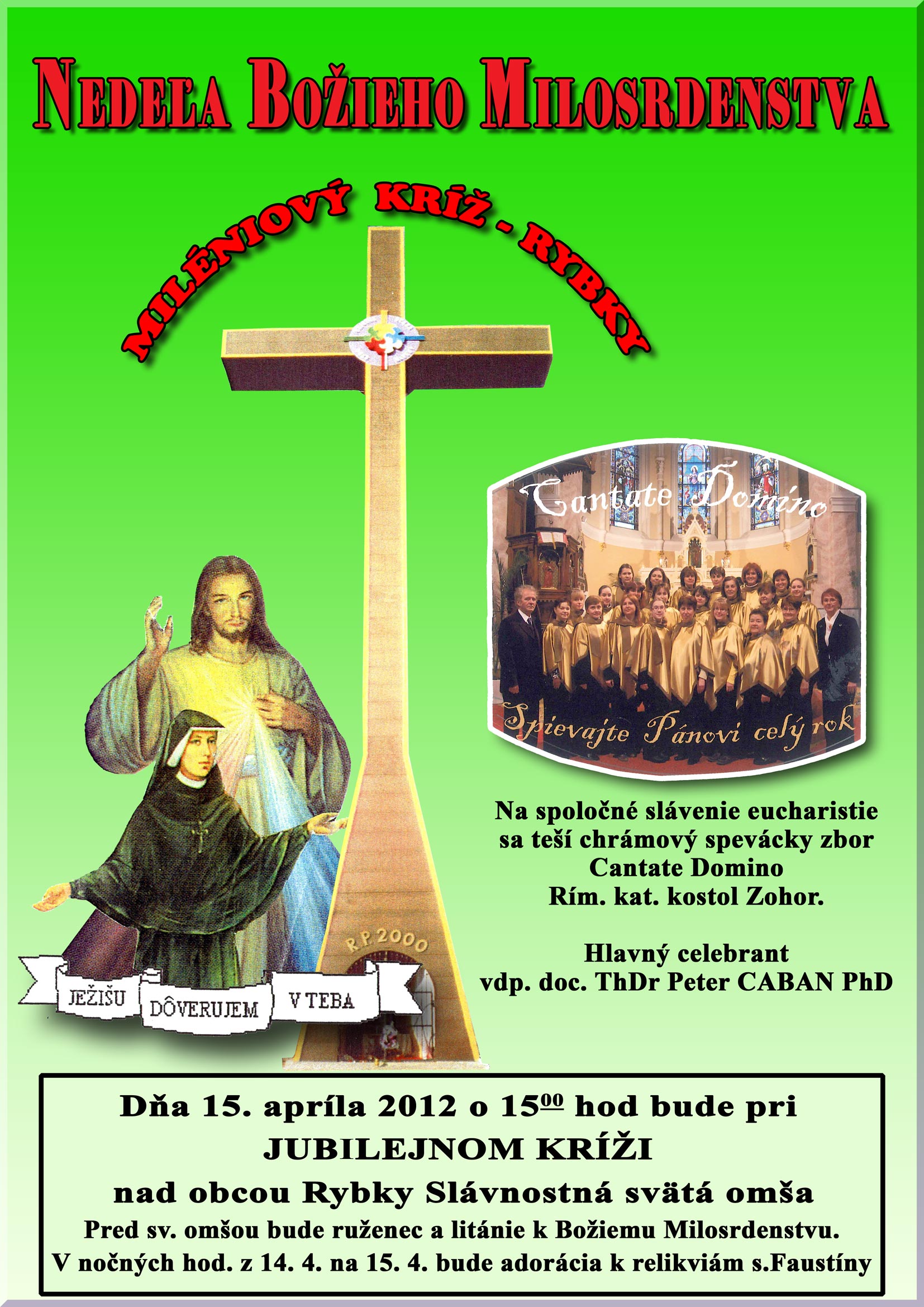 V Nedeľu Božieho Milosrdenstva 14. apríla o 15. hodine sa pri Jubilejnom kríži nad obcou Rybky uskutoční slávnostná svätá omša.
